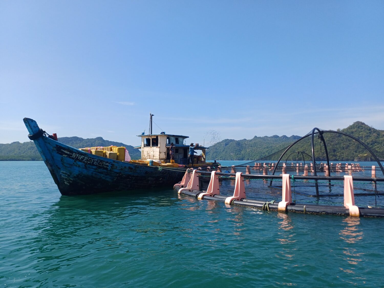 I dropped by in George to check out a nearby fish farm, just in time for the afternoon feeding.  A large wooden work boat pulled up and fed the pen first with pellets (presumably the supplements and drugs needed to keep the fish healthy) and then chopped up fish.  I was surprised that the fish was on ice – I didn’t think the penned fish would mind if their fish supper was a little fizzy.