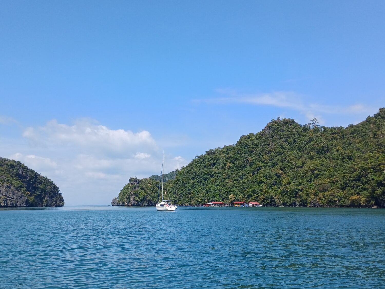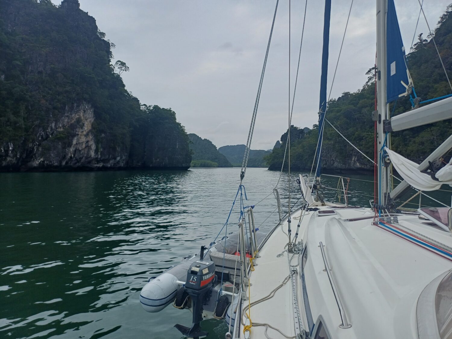 On my way up the east coast, I enjoyed a couple of days bobbing around a pretty anchorage in a protected basin between two small islands.  It’s not uncommon at anchor to be pushed to and fro by the gentle movement of the tide. In this particular anchorage, the rising tide carried Aroha to the end of the basin with a weak 4G signal. The outgoing tide carried us to the opposite end, which was just within range for Thailand mobile to ask if I wanted to use their data roaming!  I’m far too cheap to use data roaming, so for a few days my Netflix downloads were in sync with the orbit of the moon!