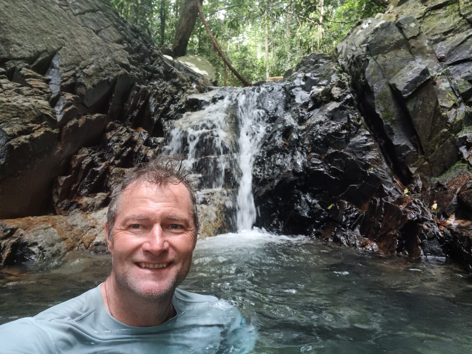 My friend Nico joined me for a week, as we continued around the north and west of Langkwai, with frequent stops searching (with limited success) for better snorkelling, and hiking to waterfalls and cool freshwater pools.  The pools feel chilly compared to the thirty-degree sea temperature, but I’m sure are a few notches above the current eleven-degree sea temperature at home in Devon!