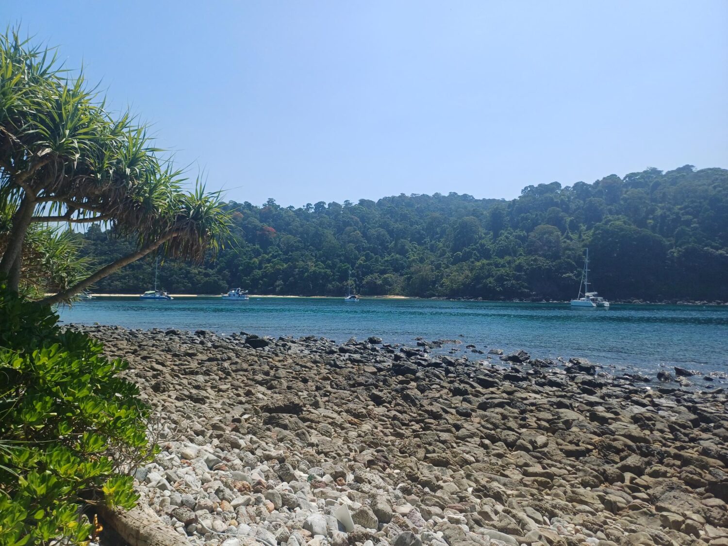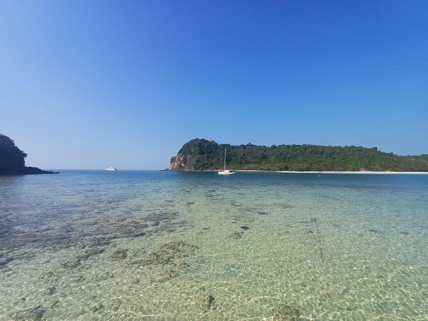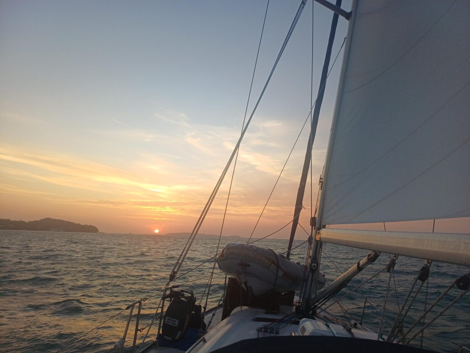 The sail to Mu Koh Rok was wonderful.  It’s unusual to have just the right conditions – as free as we aim to be, we normally have some itinerary or some plan of where we want to be that means “the wind is coming from the wrong direction”.  But the wind cooperated as forecasted and allowed an amazing sail on a beam reach – with the wind on the beam (side), resulting in a relaxing, steady boat movement with good consistent speed.